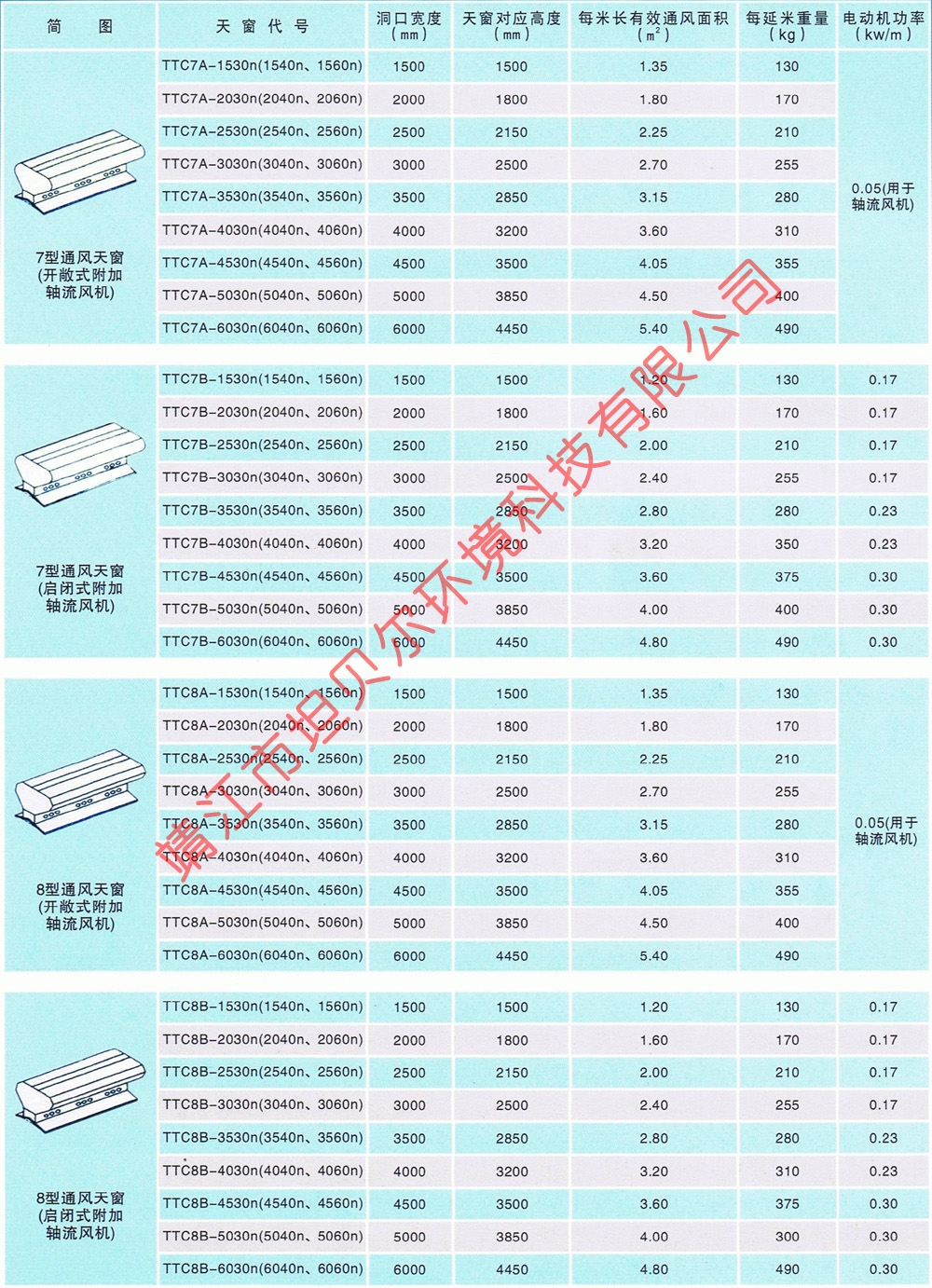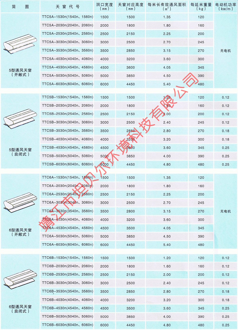 TC型通风天窗(通风器)单位长度排风量参考表-1